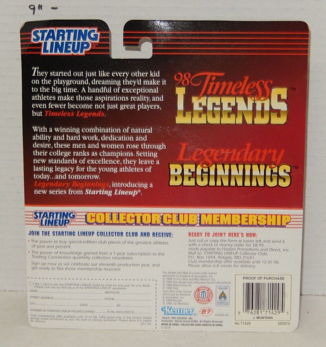 1998 Kenner SLU Starting Lineup Legendary Beginnings Joe Montana Figure HOF