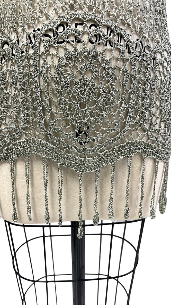 VTG Sebba Fishnet Top Fringe 80s S Blue Green Color Can be Swimsuit Coverup