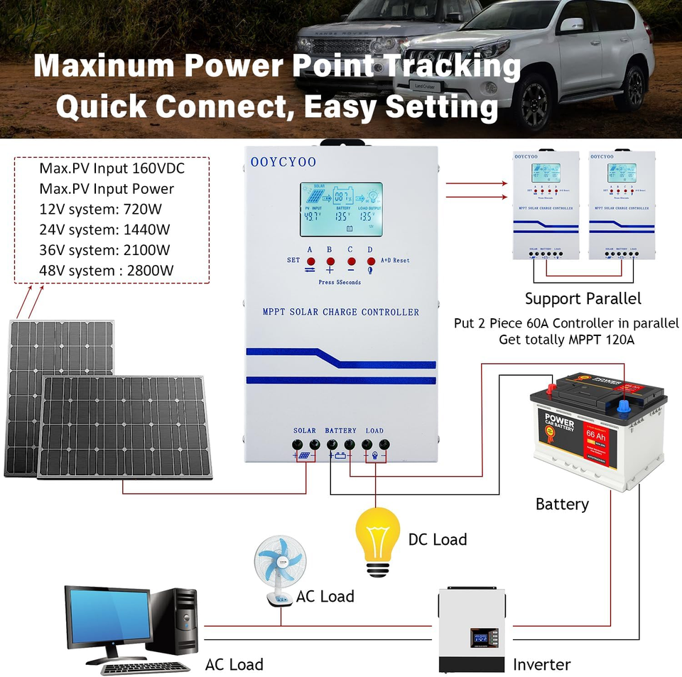 Auto 60A Solar Panel Charge Regulator, Max 160V Input with LCD Display for Lead-Acid Sealed Gel AGM Flooded Lithium Battery?
