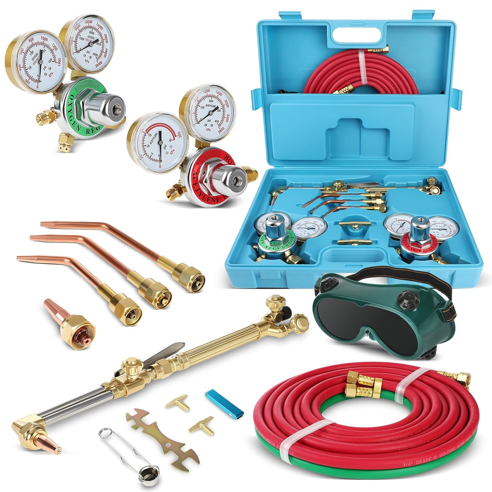 Professional Heavy-Duty Cutting Welding Torch Welder Set with Two Hoses, Precision Regulator Gauges, Durable Blue Storage Case