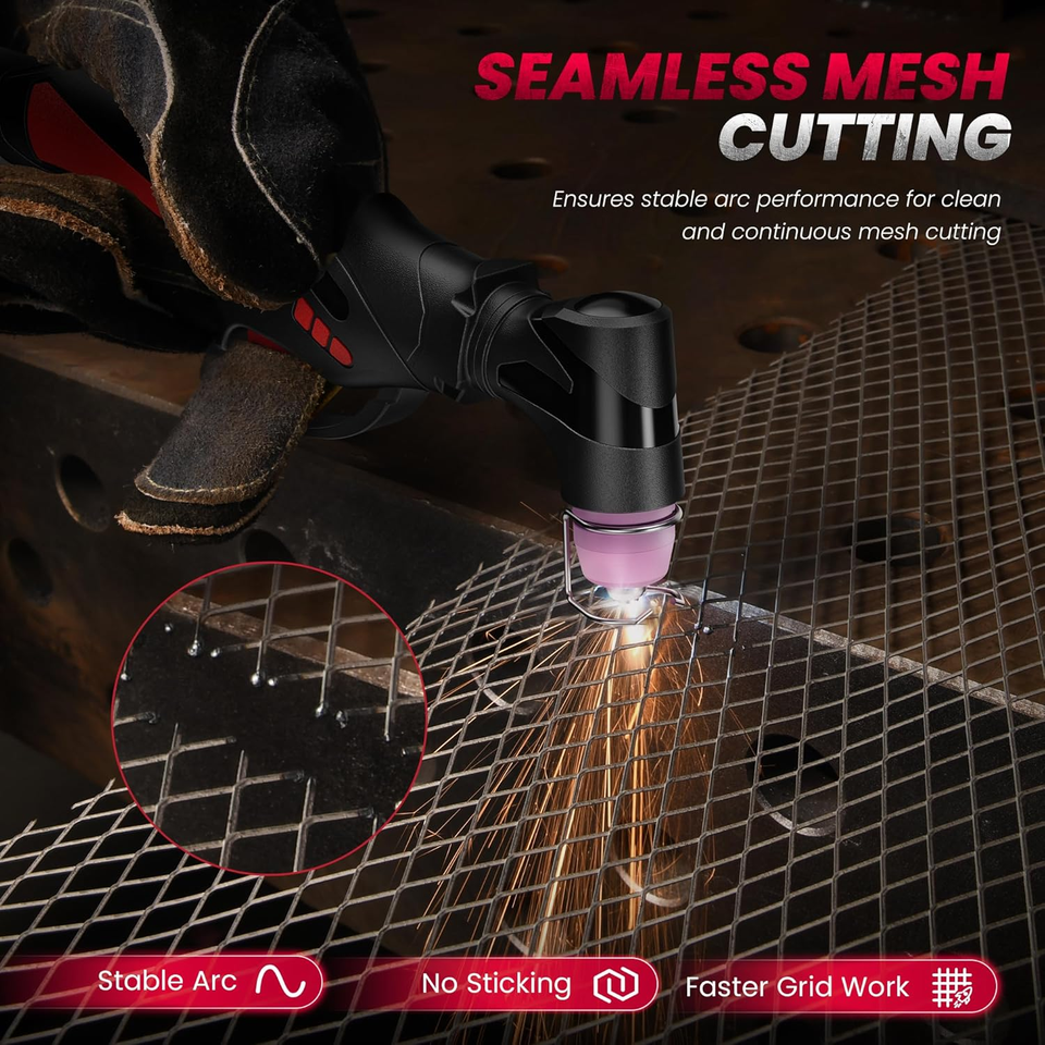 [Pilot Arc Function] bestarc plasma cutter features an AG60P pilot arc torch with high-frequency, non-contact pilot arc, so the torch doesn?t need to touch the metal to start arc?perfect for rusted, painted, or dirty surfaces. The adjustable PA (Pilot Arc) function allows for extended arc duration, reducing energy consumption during non-cutting work, minimizing electrode wear, and extending consumable life, up to 2 times longer than standard PT31 torches. Come with a 0.040" nozzle for smooth, precise cuts.