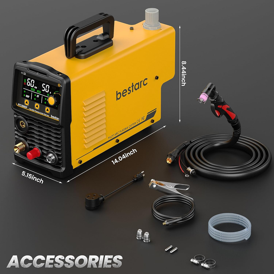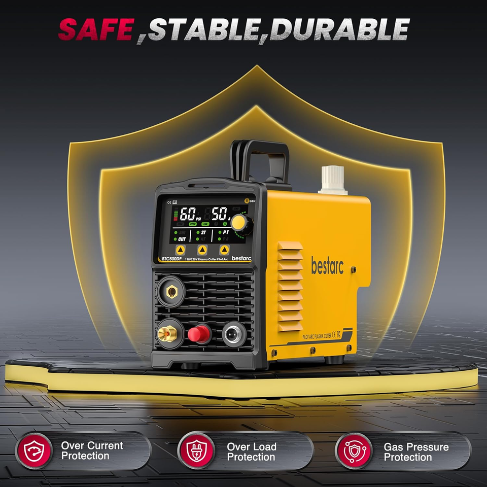 50A Bestarc Plasma Cutter Machine 110/220V Dual Voltage, 1/2'' Clean Cut 3/4 Inch Max Cut, Post Flow Mesh, 2T/4T for Beginners DIY, Yellow