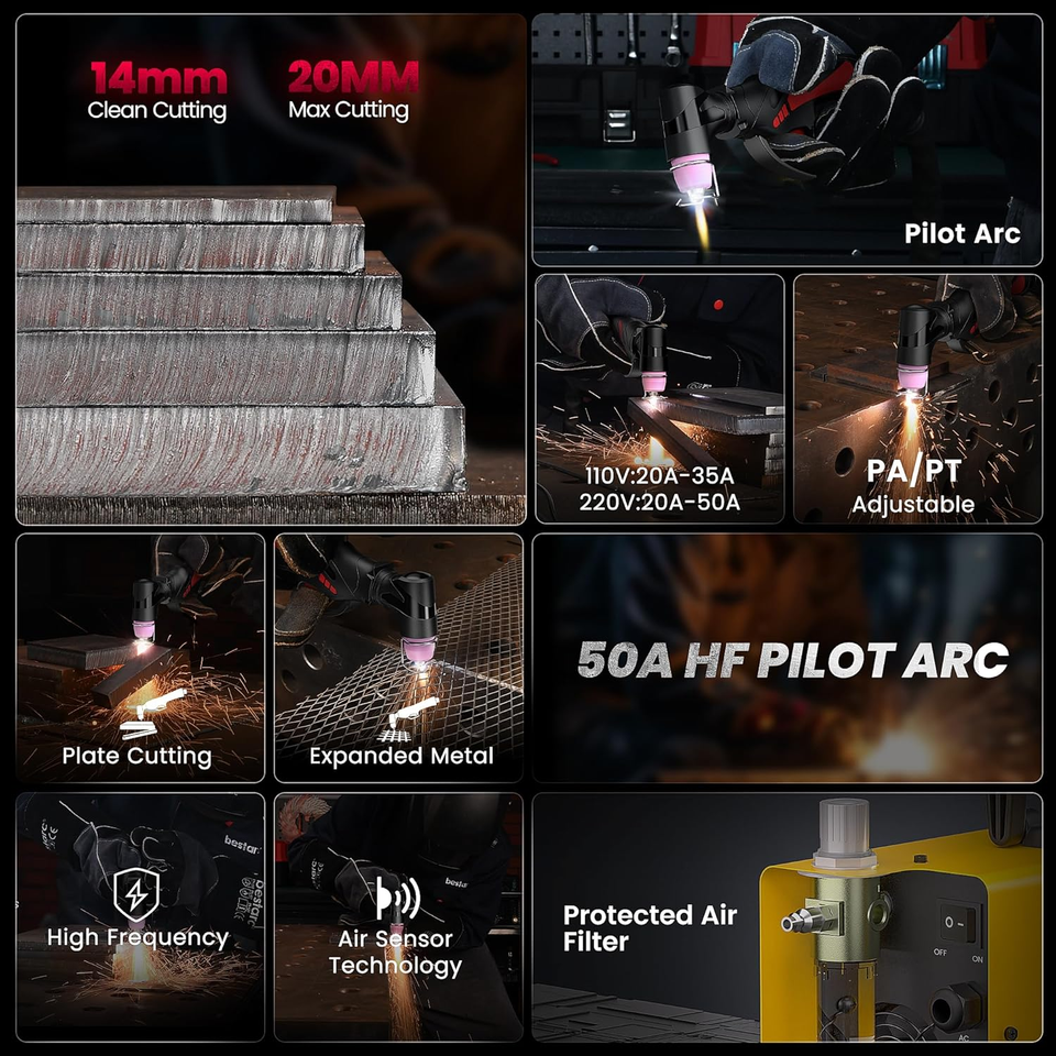 Built-in Regulator, Air sensor, Plasma cutting torch, Portable, 18mm Max cutting thickness @220V 65PSI, Set up within 1 min, Easy to use, Powerful performance, bestarc plasma cutter, cortadora de plasma para metal