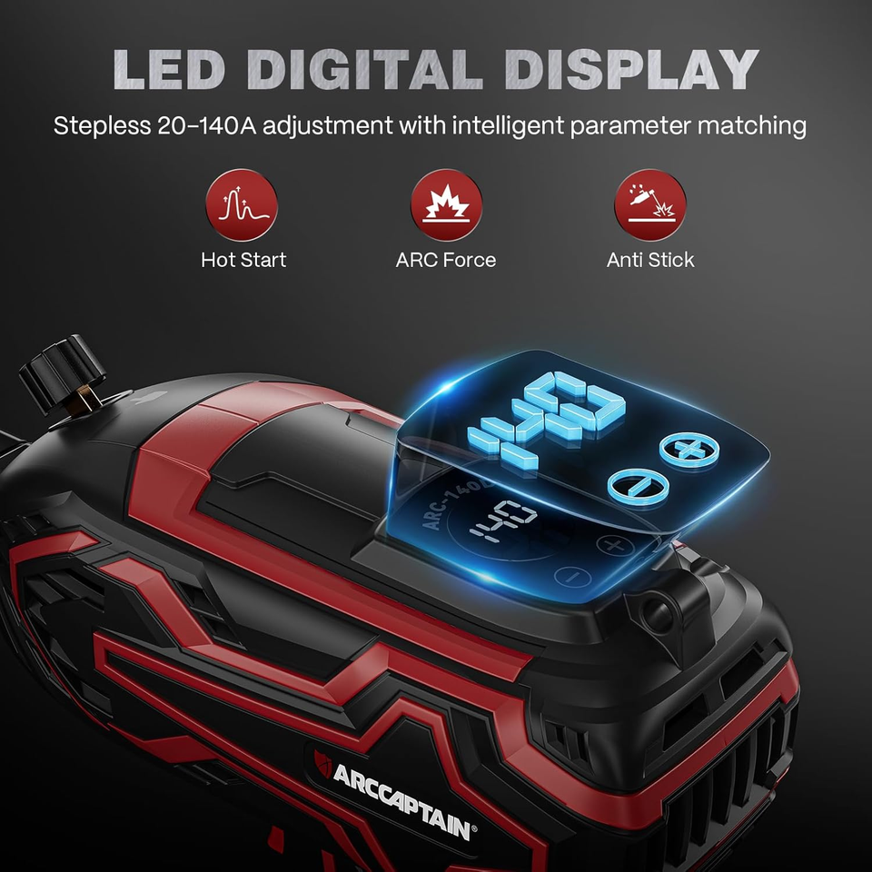 140A OUTPUT WITH LED DISPLAY: Breaking through traditional gear control limits, this handheld welding machine offers stepless current adjustment (max 140A) with intelligent auto-matching of core parameters (hot start, arc force, anti-stick) ? no manual tuning needed. It precisely fits various materials/thicknesses for stable, high-quality welds. The LED digital display shows real-time current/operating status and fault code alarms for quick troubleshooting, combining convenience and safety