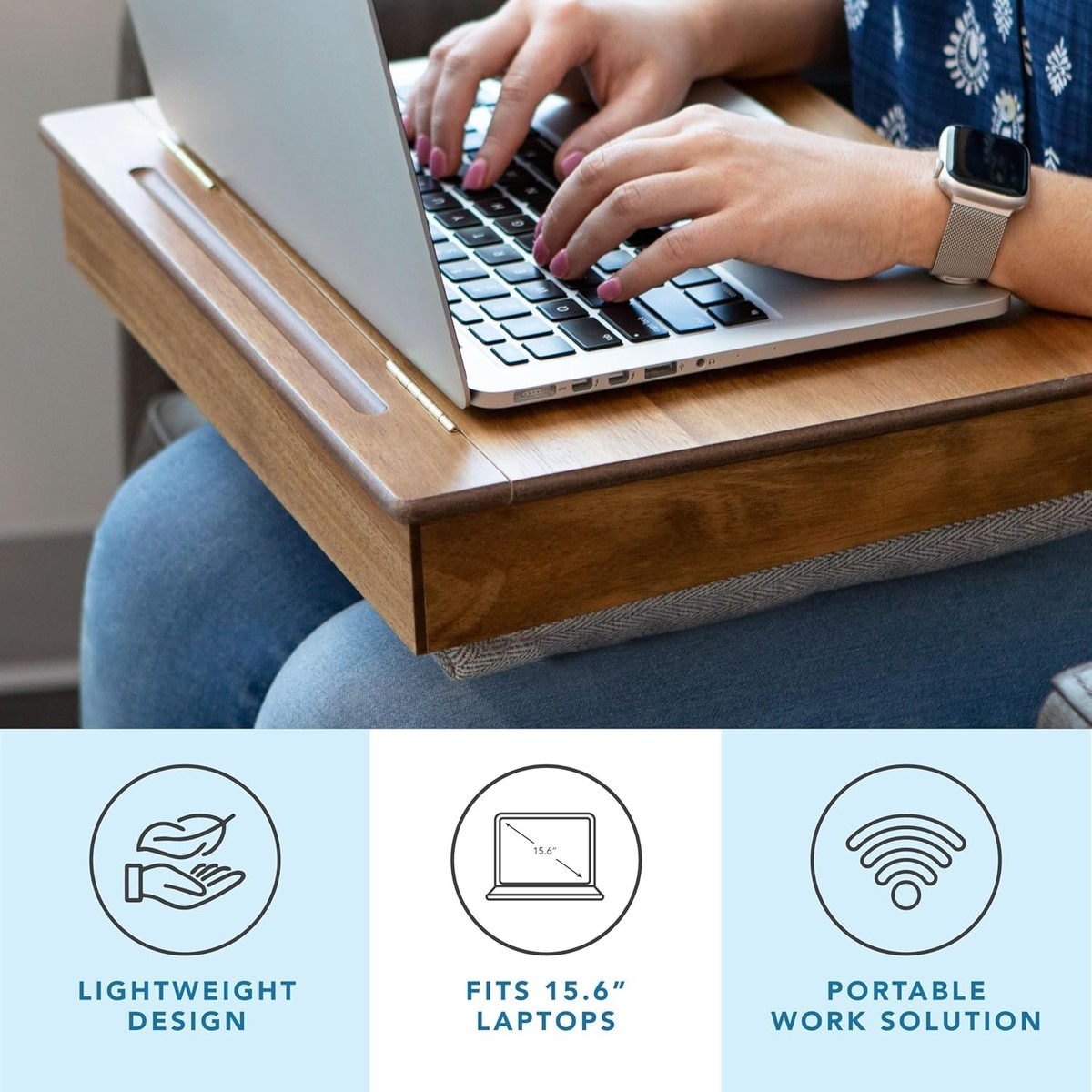 Comfortable Lap Cushion: Soft, neutral-toned cushion ensures stability and comfort for hours of use, seamlessly blending with any decor.