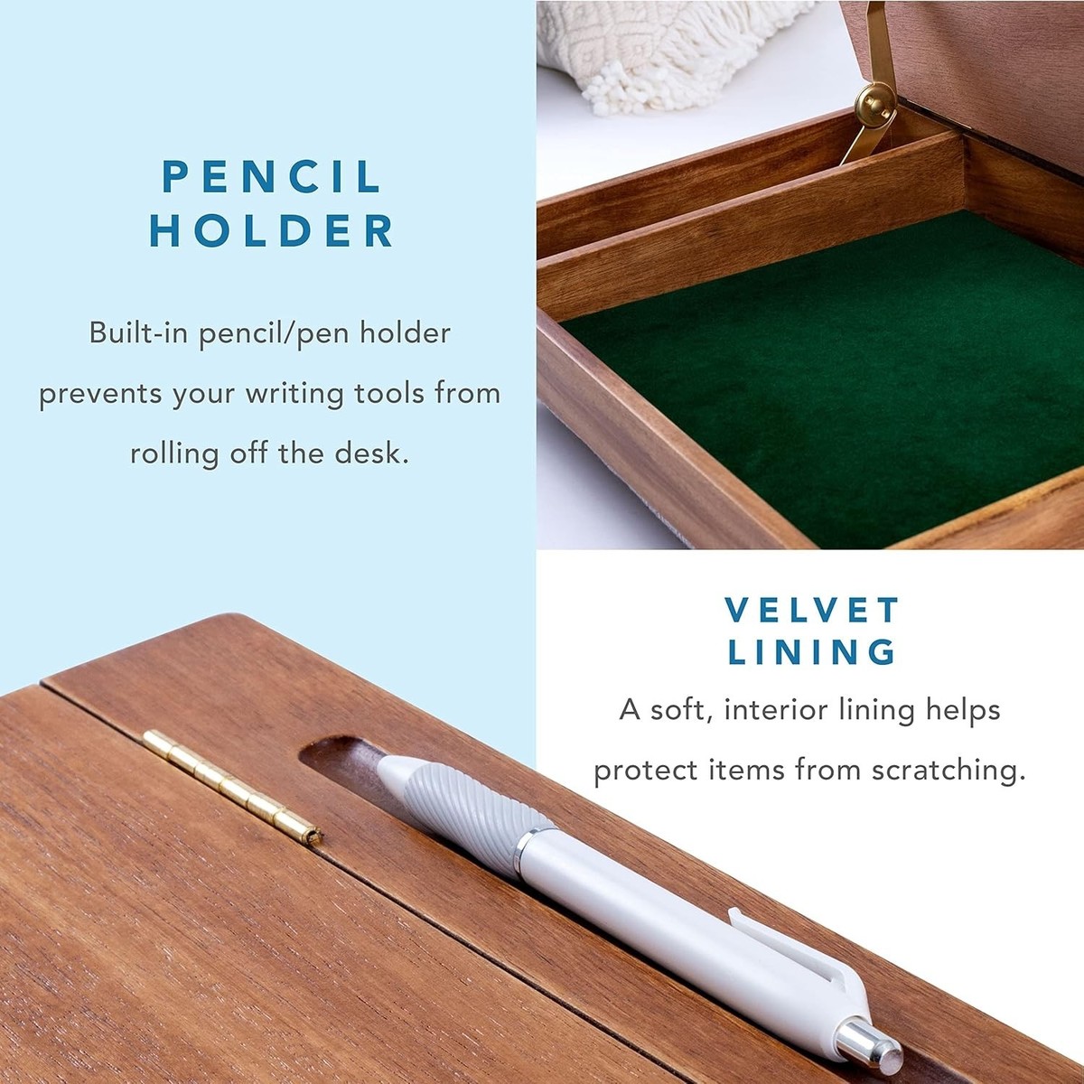 Indulge in a touch of old-fashioned luxury and elevate your work-from-home experience. Order your Compact Schoolhouse Lap Desk today and redefine comfort and style in your creative endeavors!