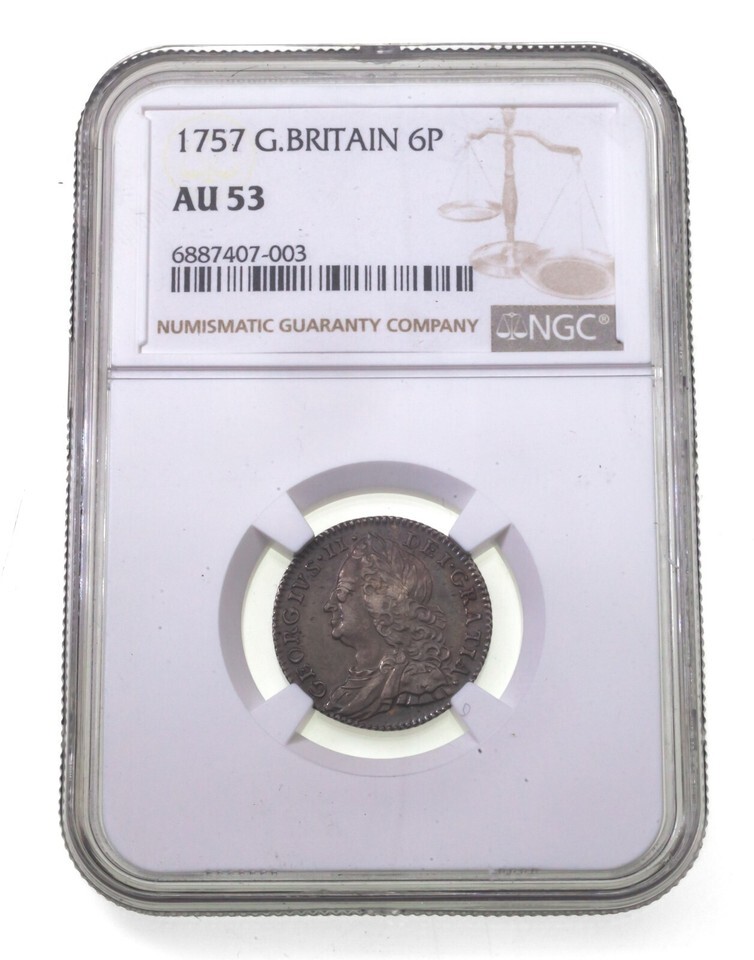 Sealed in an NGC holder with the label "1757 G.BRITAIN 6P"