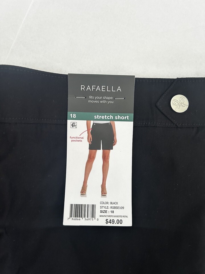 Rafaella Ladies Stretch Bermuda Shorts Size 18 Black New $49 Retail Classic BxDD