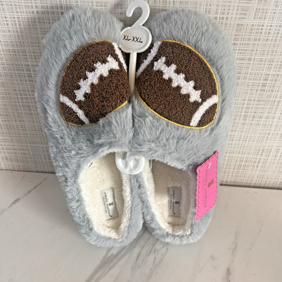 Simply Southern football themed slippers. Size XL - XLL. New, with tags. Gray and with cream insides. Super cute!