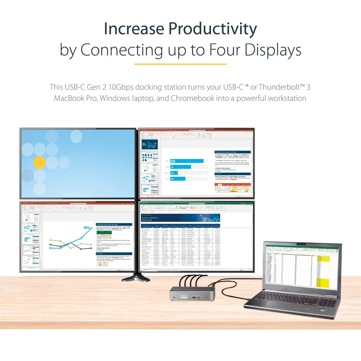 StarTech.com USB-C Quad Monitor Docking Station for MacBook Pro/Air M1 M2 M3 M4