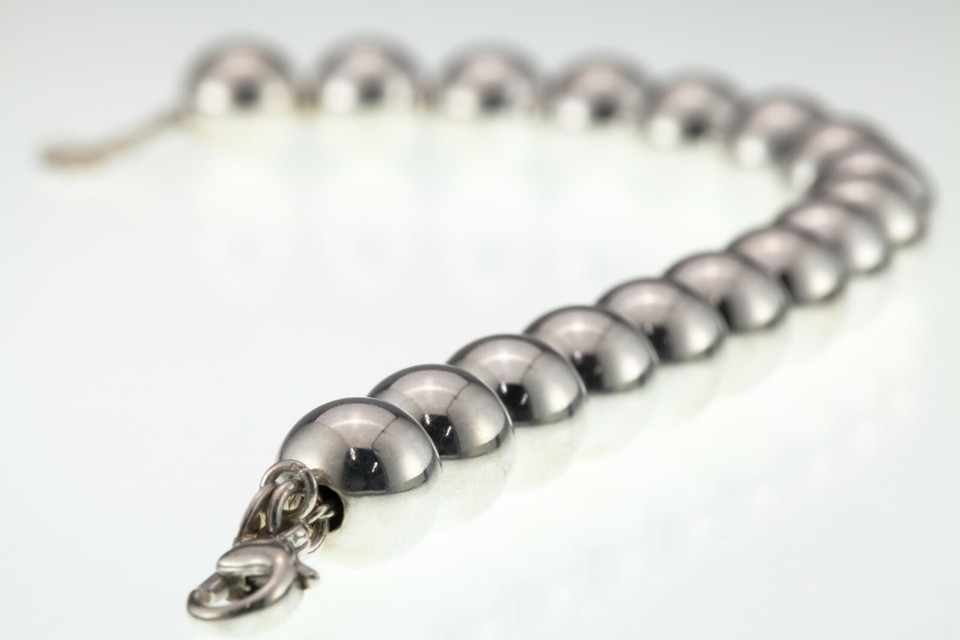 Tiffany Co. Sterling Silver 9 mm Beaded Bracelet w/ Pouch