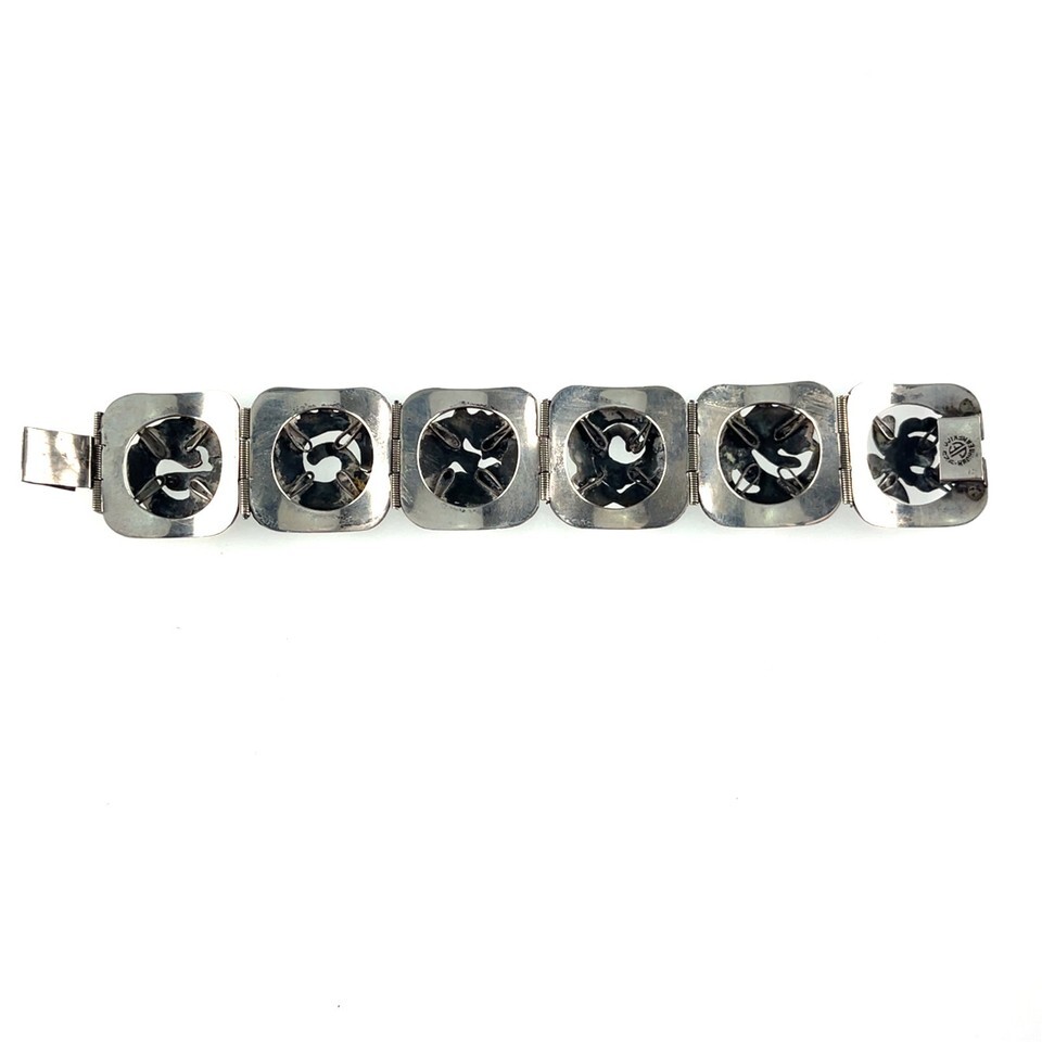 Authenticity Guarantee Vintage Mexico Sterling Silver Panel Bracelet Signed ...