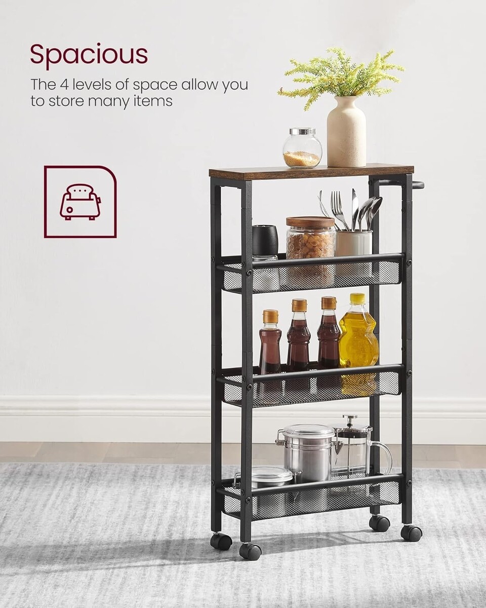 Elegant 4-Tier Narrow Rolling Cart for Effortless Kitchen Organization
