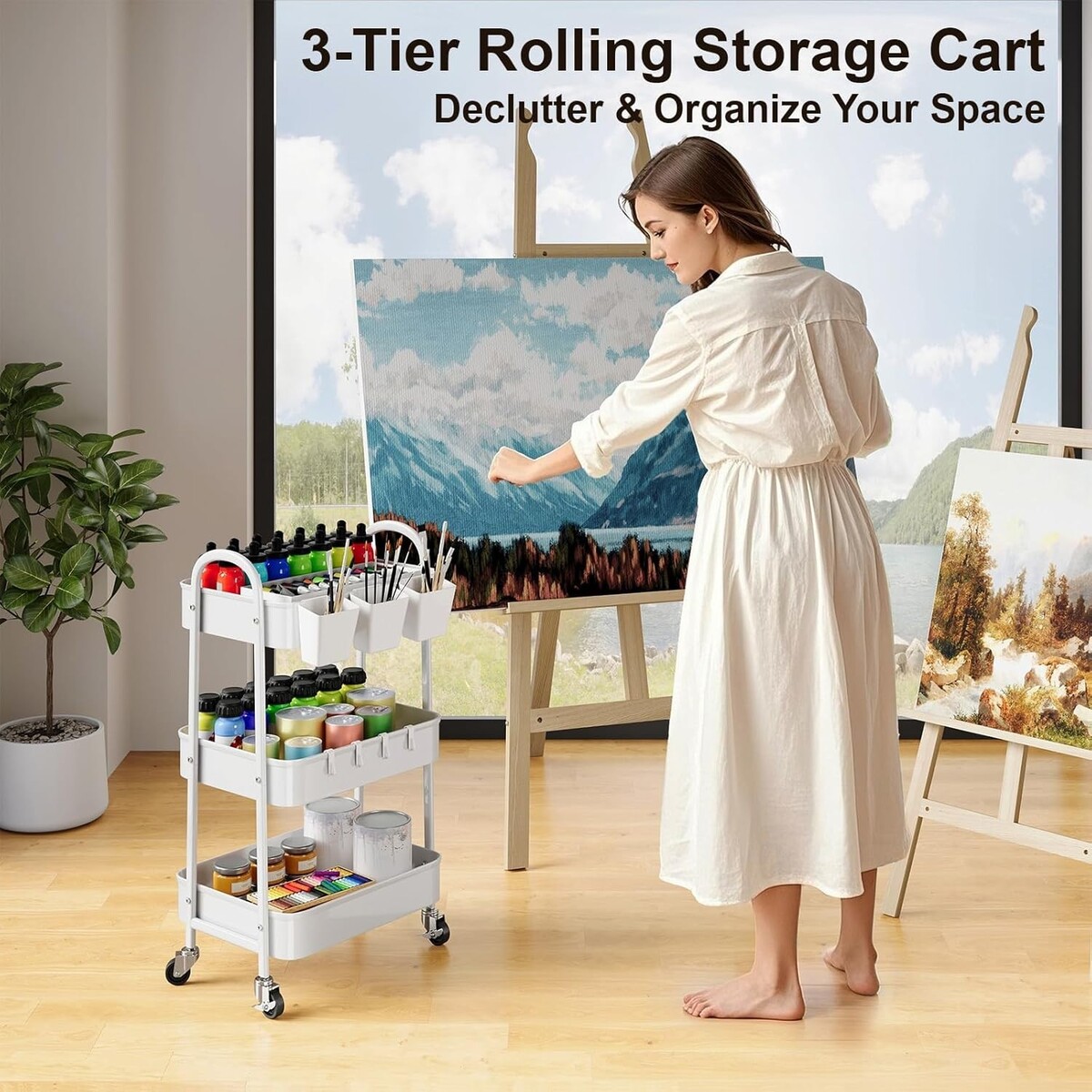 Multi-Functional Rolling Cart with Lockable Wheels - Perfect for Kitchen & Craft