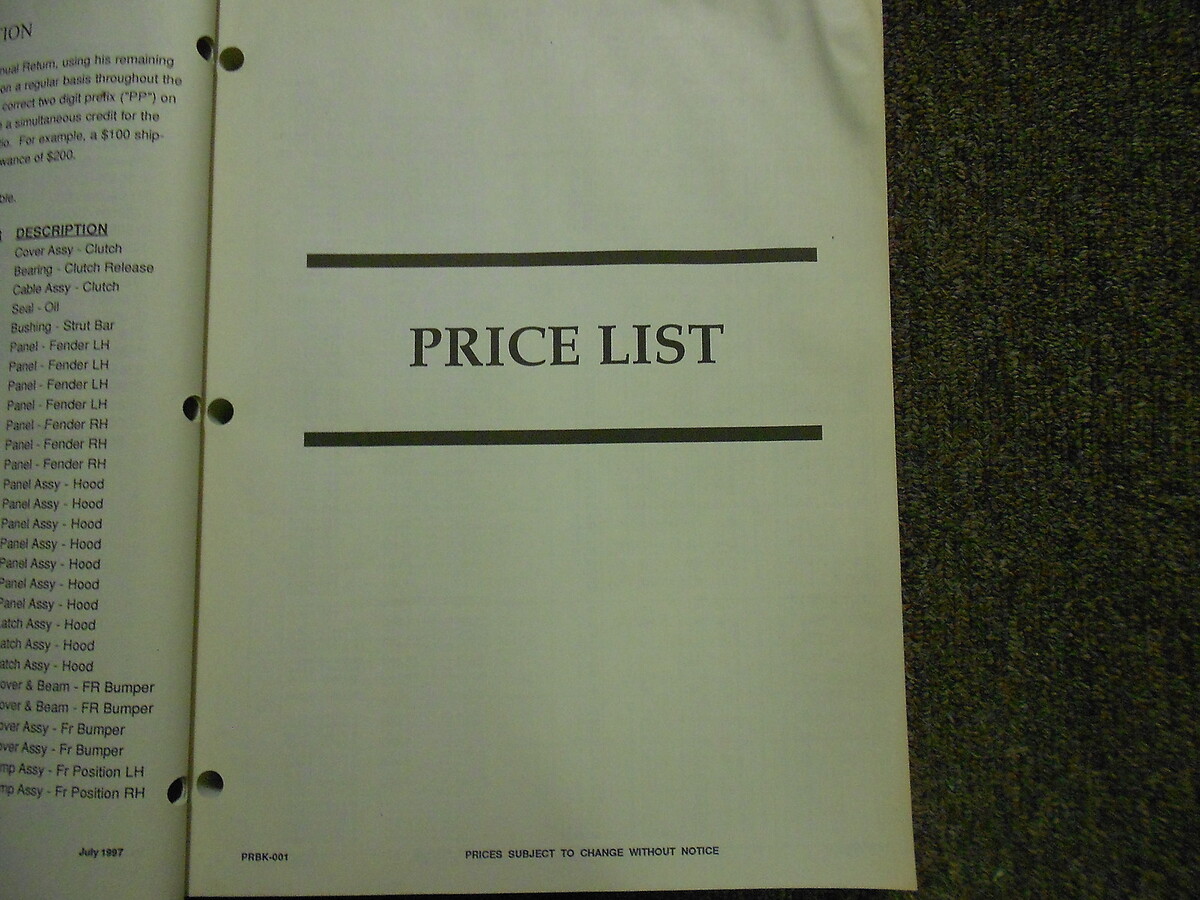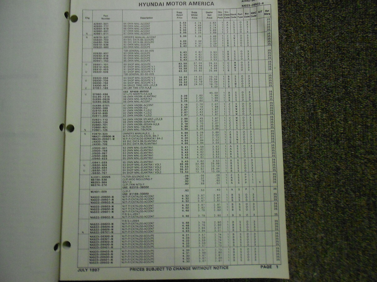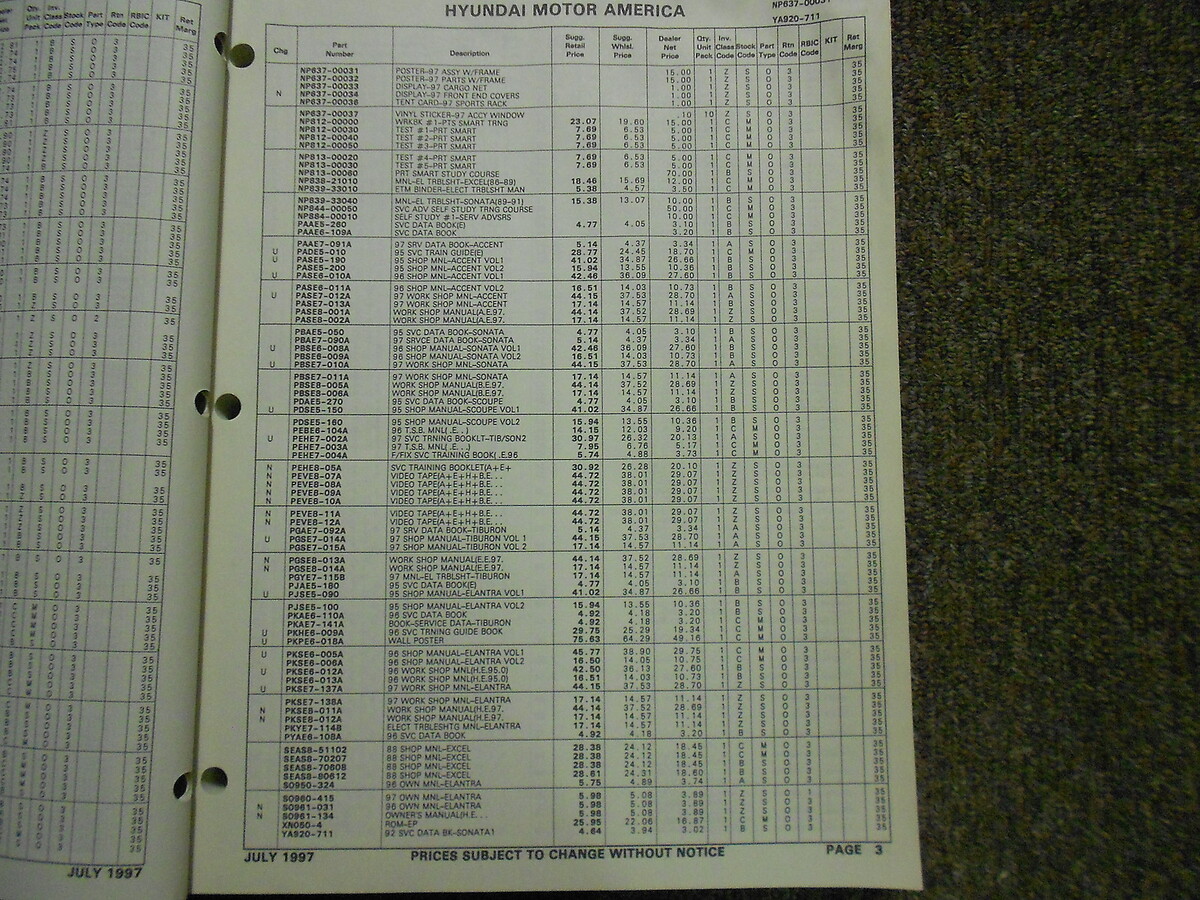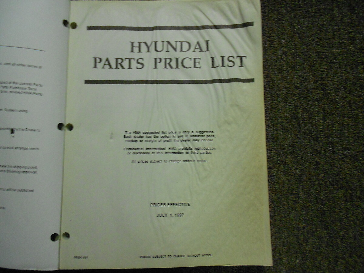 1997 Manuale di listino prezzi delle parti Hyundai