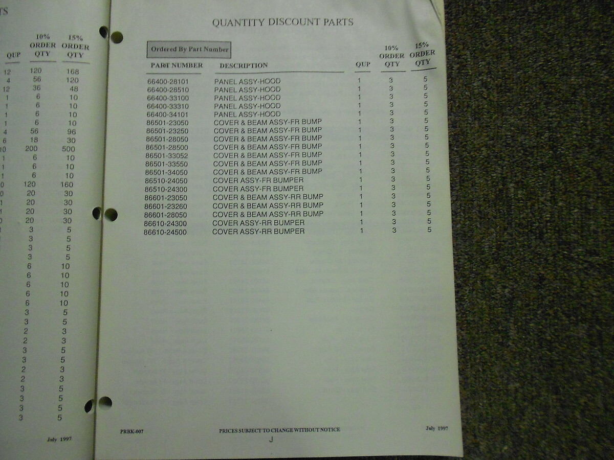 1998 Hyundai Parti Prezzo List Manuale Luglio Tiburon Elantra Fabbrica OEM Libro