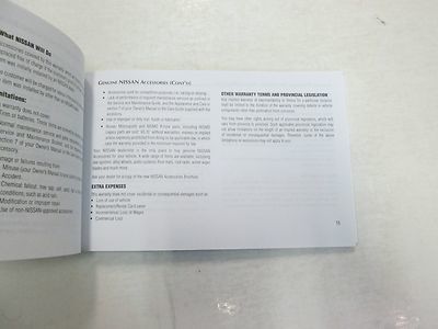 Cio non include un manuale dei proprietari e viene venduto da solo. Ci sono macchie sul coperchio anteriore e posteriore. Su tutti i contenuti all'interno sono in buone condizioni leggibili. Informativo con illustrazioni, copre informazioni di garanzia, ottimo manuale da avere quando possiedi una Nissan E manterra il tuo veicolo sulla strada. Questo manuale ti fara risparmiare denaro Riparazioni/Servizio. Se non sei soddisfatto della tua esperienza di shopping, contattaci per ottenere una soluzione prima di decidere di lasciare un NEUTRO o a NEGATIVO Feedback, faremo del nostro meglio per risolvere eventuali problemi il prima possibile. Ti forniremo il miglior servizio possibile perche il POSITIVO FEedback e cinque STARS sono cio per cui stiamo cercando. Per favore inviami un'e -mail tram