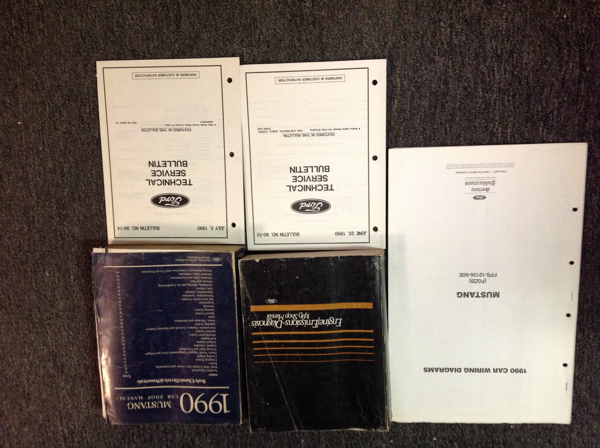 Factory 1990 MUSTANG Manuale di servizio, manuale dello schema elettrico, manuale di diagnosi delle emissioni di controllo del gruppo propulsore e bollettini di servizio tecnico