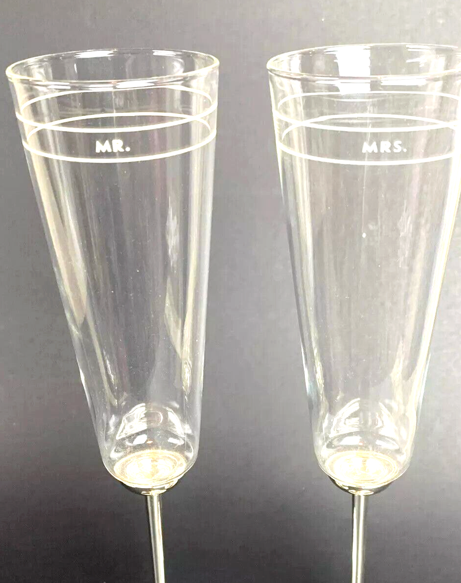 Kate Spade Mr & Mrs Darling Point Crystal Champagne Flutes Pair Silverplate NEW