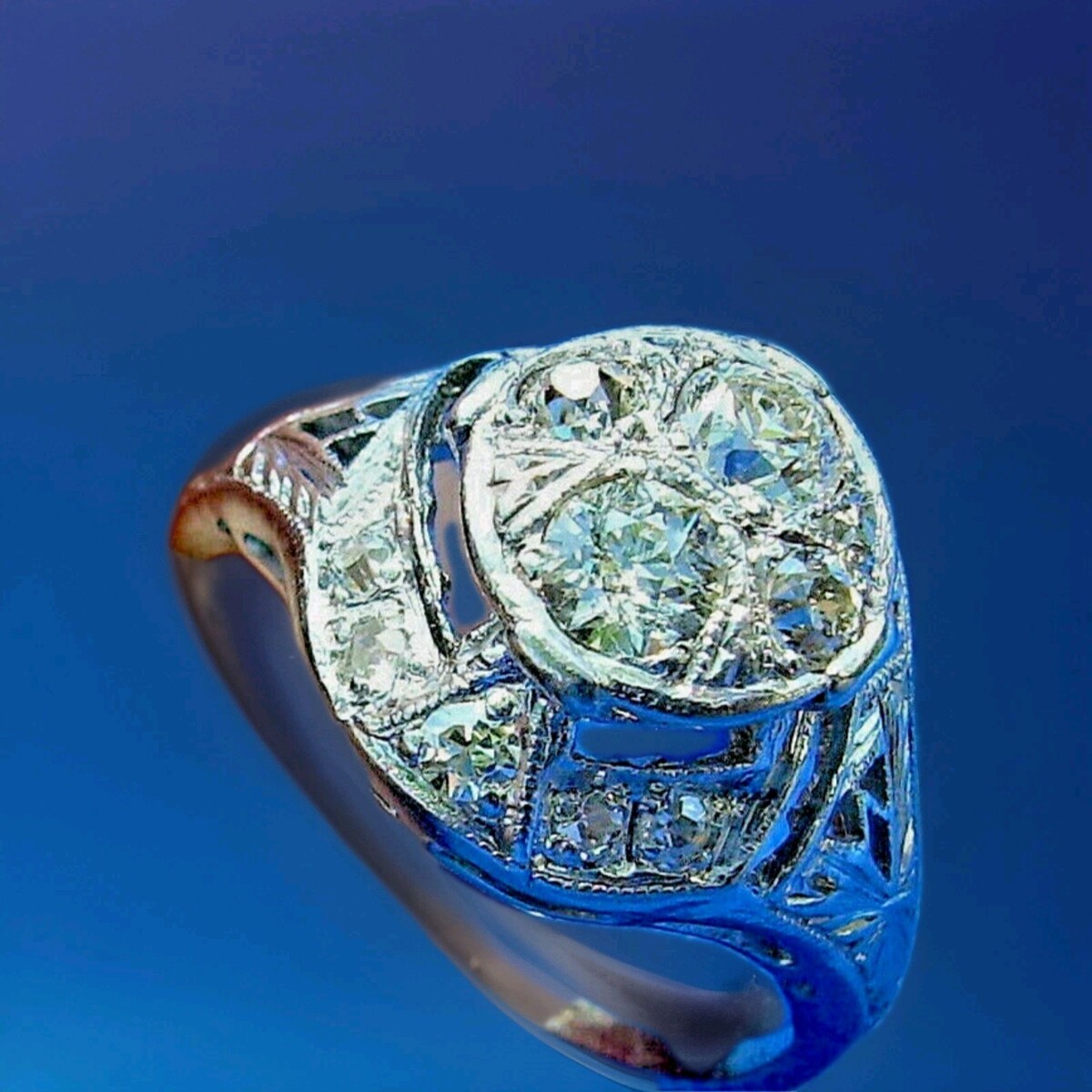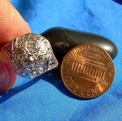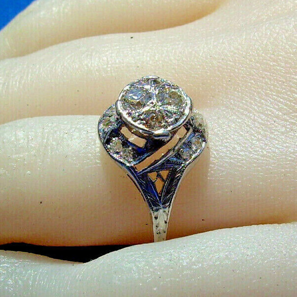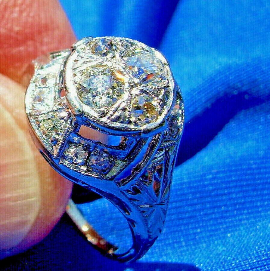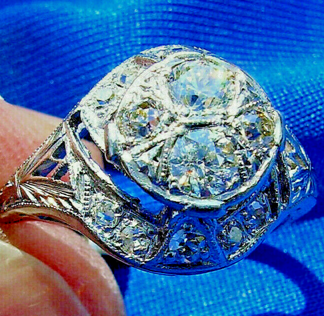 EARTH MINED DIAMOND Deco Engagement Ring VINTAGE PLATINUM Filigree Statement 7.5