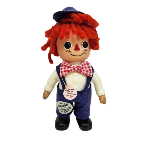 ROYAL INDUSTRIES RAGGEDY ANN ANDY HARD PLASTIC COIN MONEY BANK 9" VINTAGE 1974