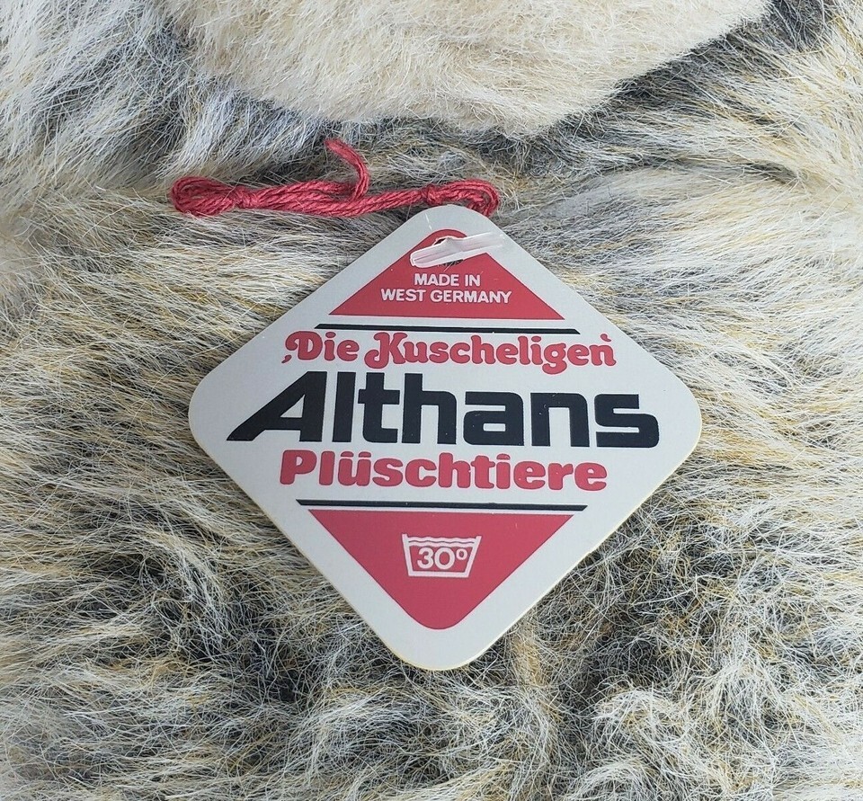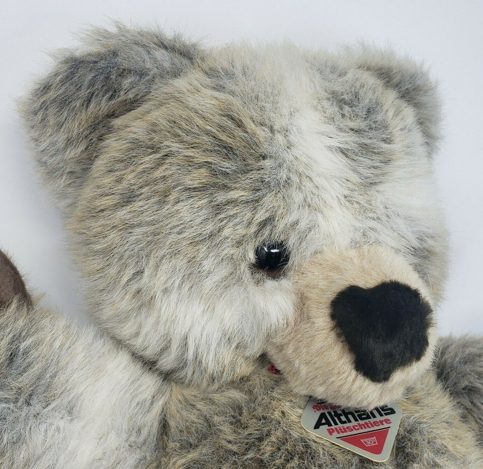 VINTAGE ALTHANS WEST GERMANY GREY TEDDY BEAR 20" STUFFED ANIMAL PLUSH TOY W/ TAG
