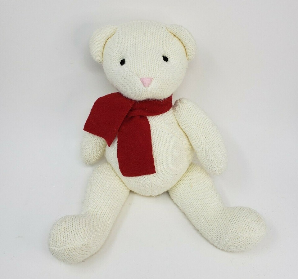 POTTERY BARN KIDS KNITTED CREAM JOINTED TEDDY BEAR 15" STUFFED ANIMAL PLUSH TOY