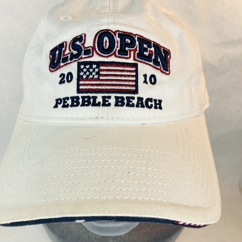 US Open 2010 Pebble Beach American Flag Red White Blue Adjustable Baseball Hat. Nice clean PREOWNED condition as shown. See all photos.