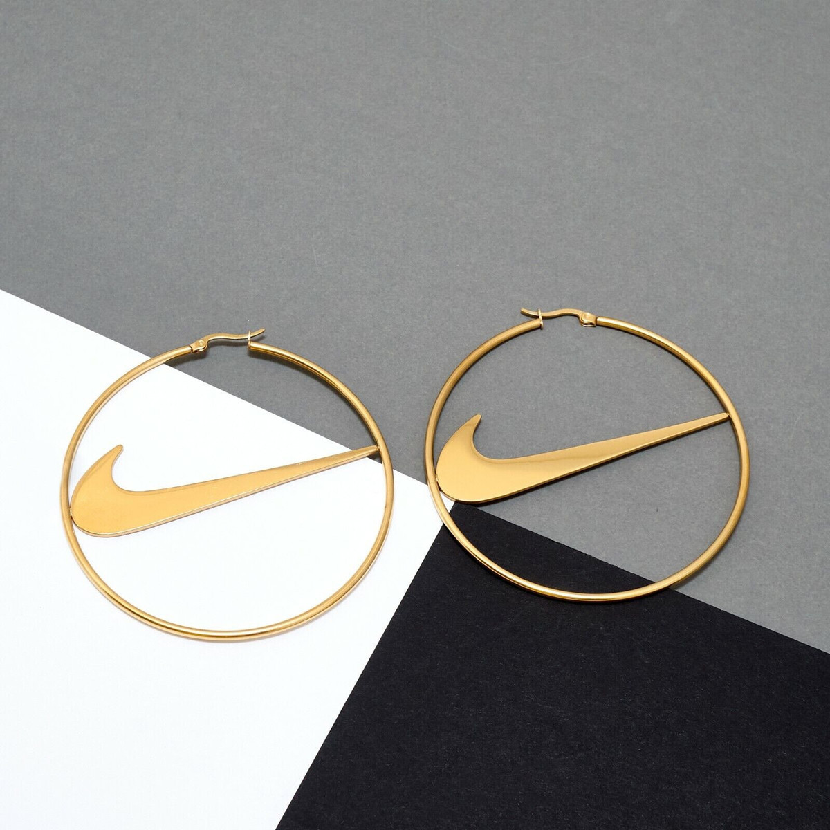 Nike Swoosh Gold - Plated Metal Hoops Clasp Earrings, Pair, For Women Hoop