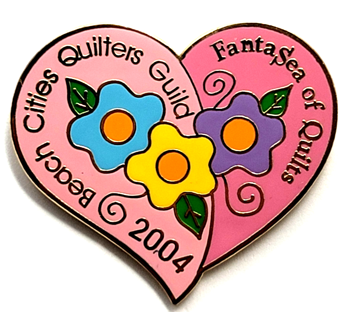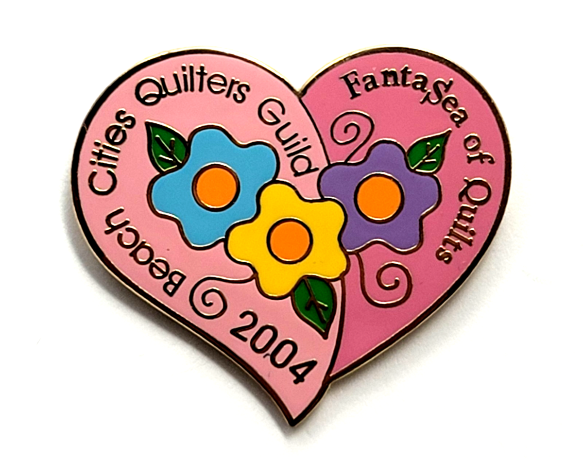 2004 FantaSea of Quilts Beach Cities Quilters Guild CA Pin Vintage Heart Flowers