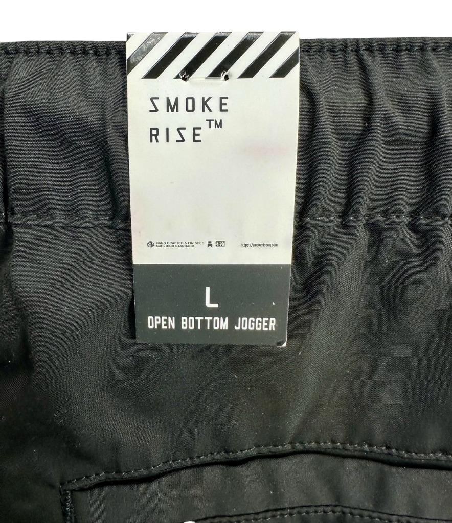 New With Tags Smoke Rise Black Cargo Open Bottom Jogger Fit Utility Pockets Pants Size Large Comes as shown