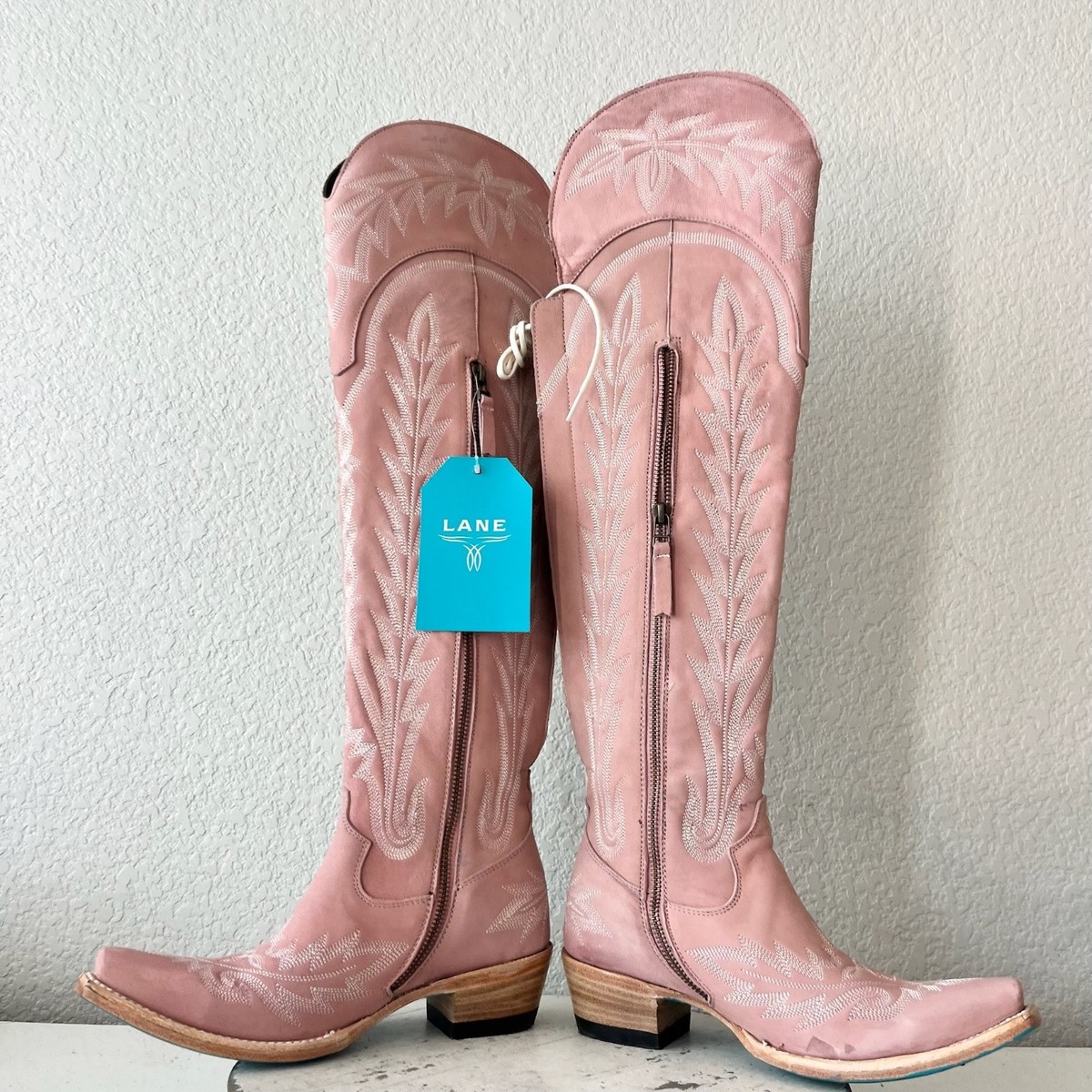 Lane LEXINGTON Over the Knee Pink Cowboy Boots Western Cowgirl Snip Toe Tall 6.5