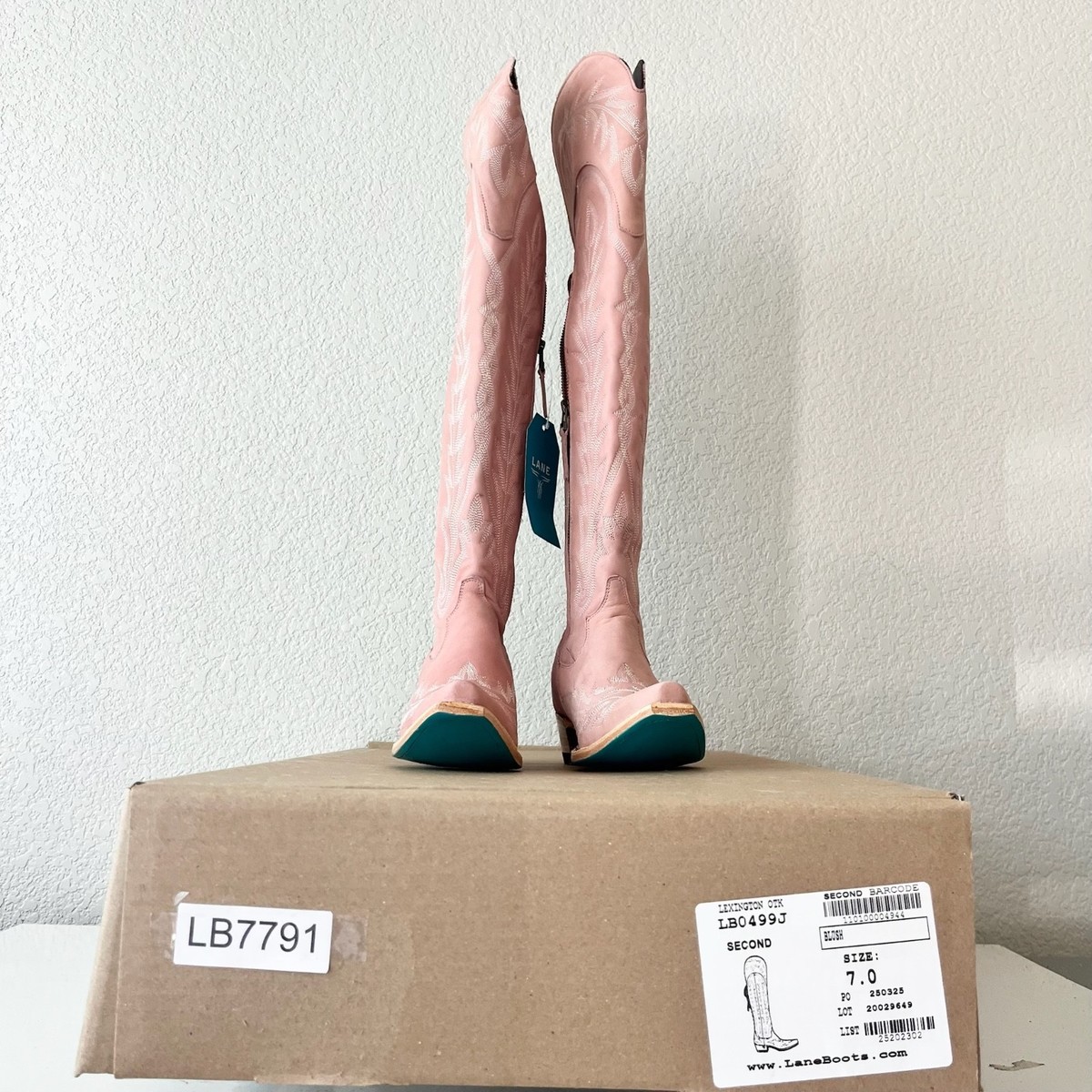 Lane LEXINGTON Over the Knee Pink Cowboy Boots Western Cowgirl Snip Toe Tall 7