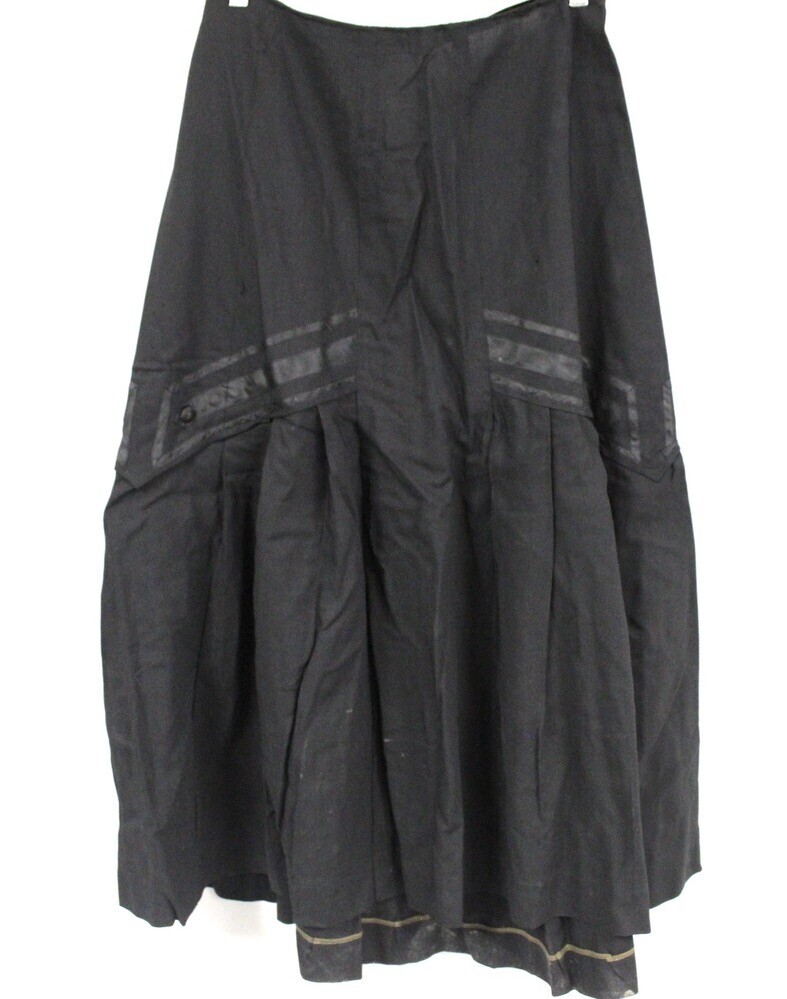 Antique Victorian 1890sBlack Wool Voile Full Skirt Satin Appliqué Goth Steampunk