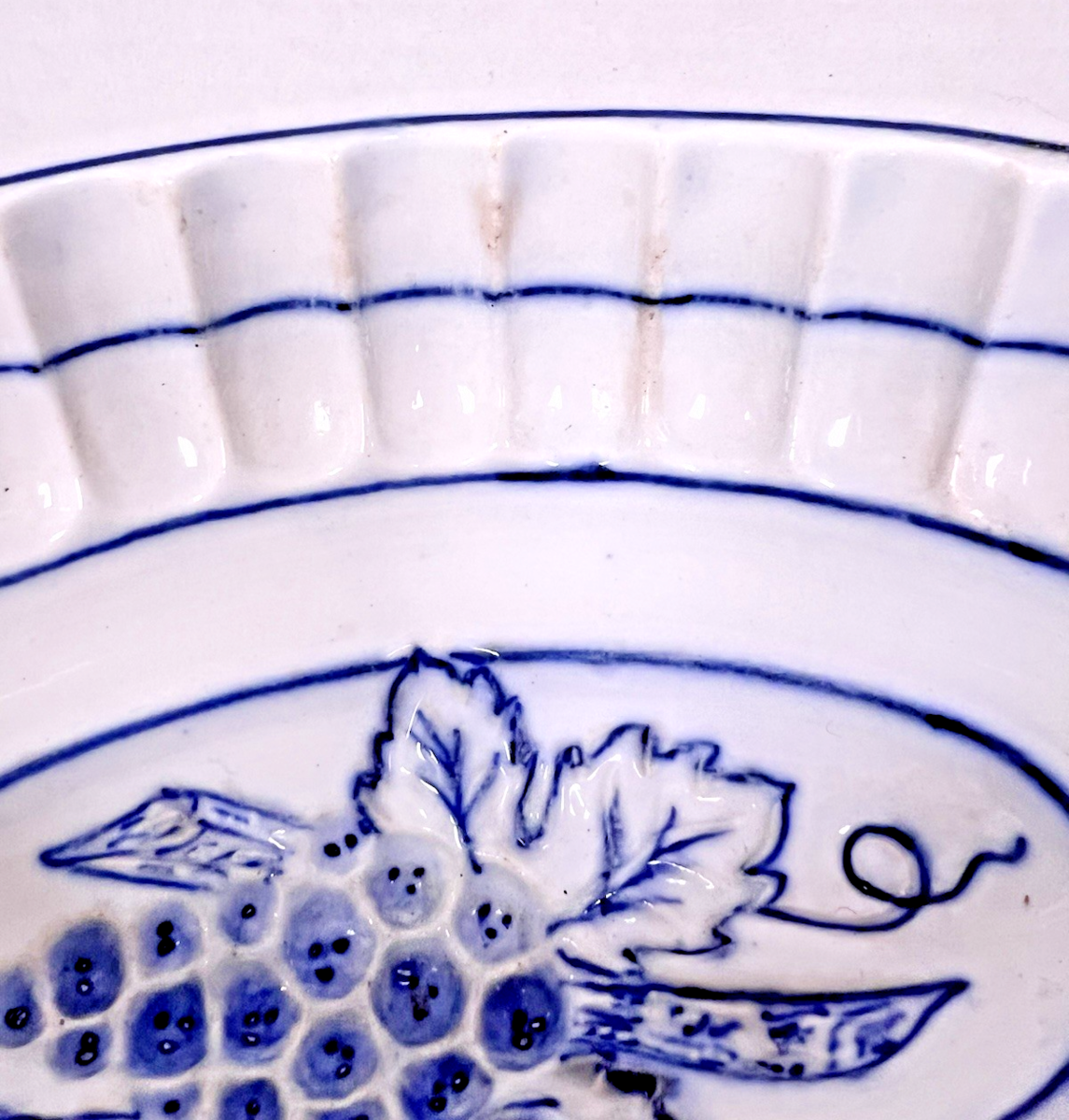 Antique Blue White Germany Grapes Ironstone Jelly Pudding Mold 7" x 4 5/8"