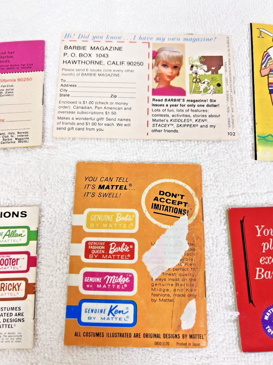 6 Vintage Barbie Fashion Booklets Skipper Skooter Ricky Tutti Todd and Ken Card