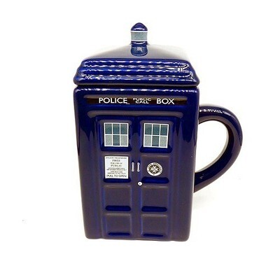 Zeon Blue White Ceramic Doctor Who Tardis Police Public Call Box Mug With Lid