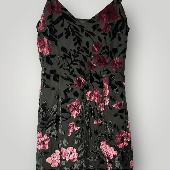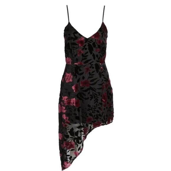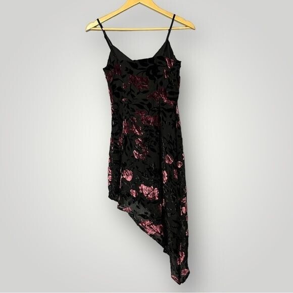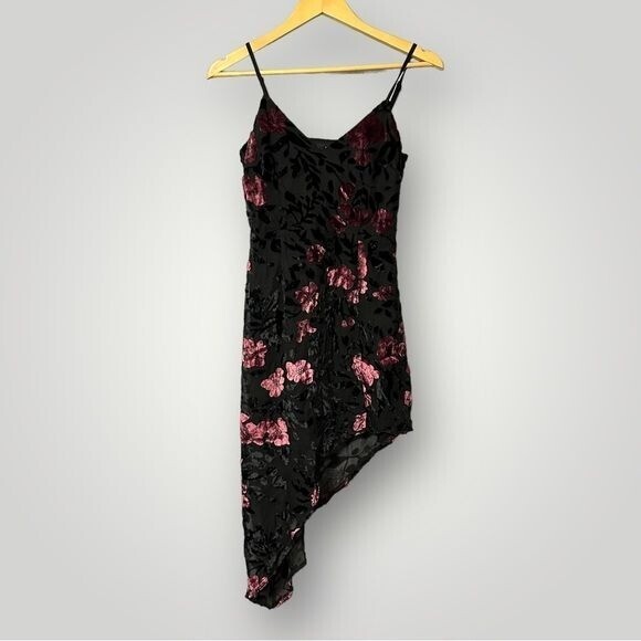 Lulus Evenings with You Black Floral Velvet Asymmetrical Dress Size XS