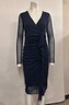 Front ruching adds just the right amount of texture to a sheath dress fashioned with sheer mesh sleeves.