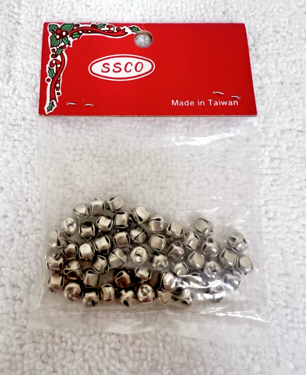 Vintage Miniature Dollhouse Toy Christmas Holiday Silver Bells Unopened Package. SSCO packaged silver bells is unopened unused, decoration, miniature doll holiday Christmas accessory pieces. No tear or rips to package, partial original retail sticker present. See pictures.