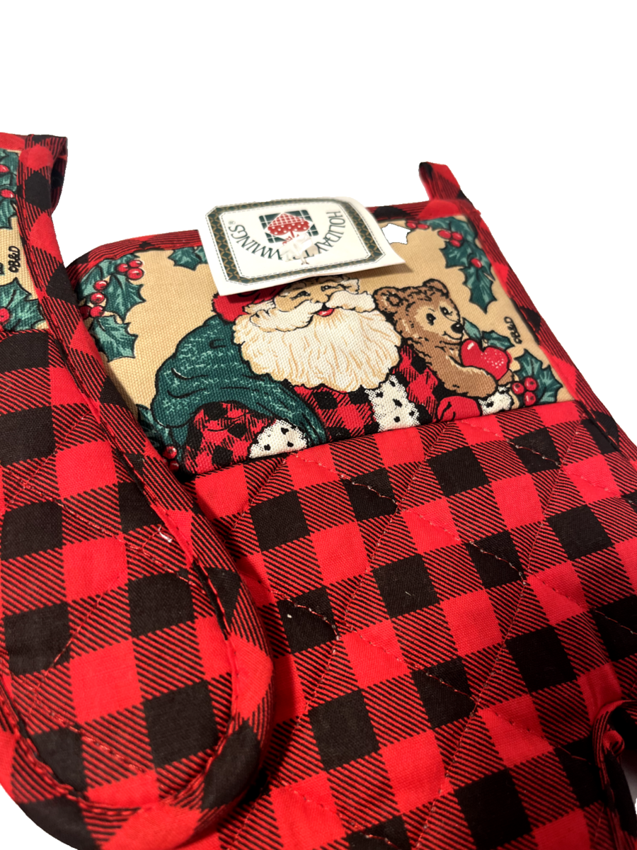 Holiday Trimmings Oven Mit Set Red Black Buffalo Check Santa Christmas Holiday