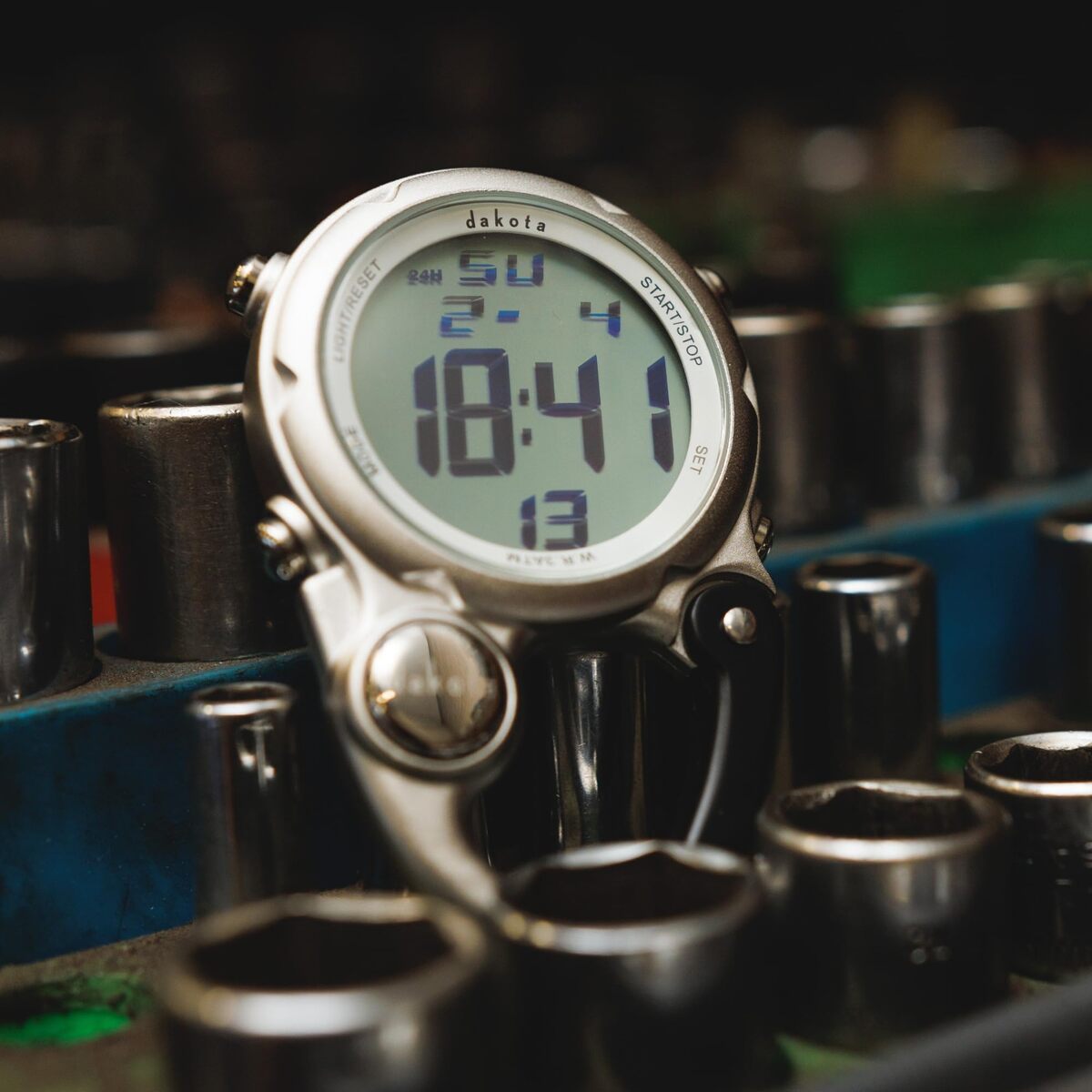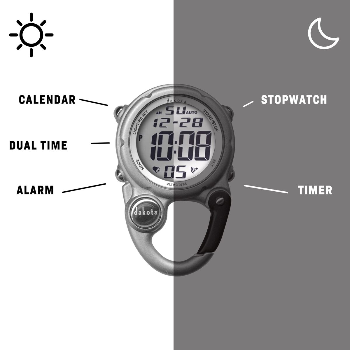 Dakota Digital Clip Watch with Alarm, Timer, Stopwatch & Dual Time - Silver