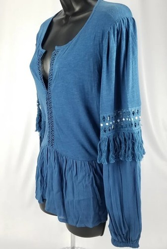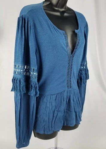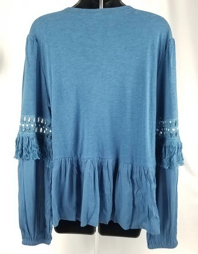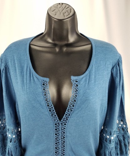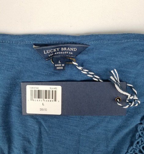 Lucky Brand Womens V-Neck Style Blue Long Flowing Sleeves T-Shirt Top Large $69