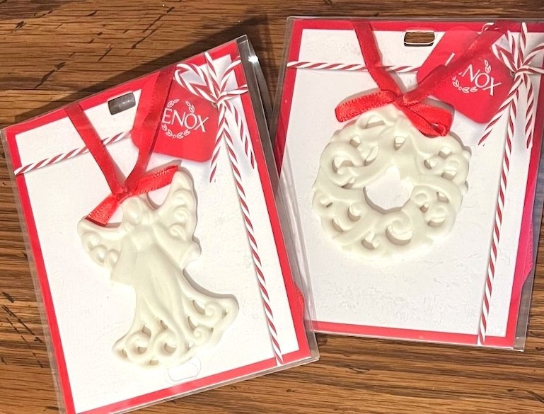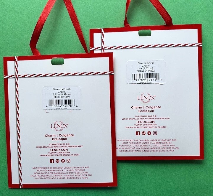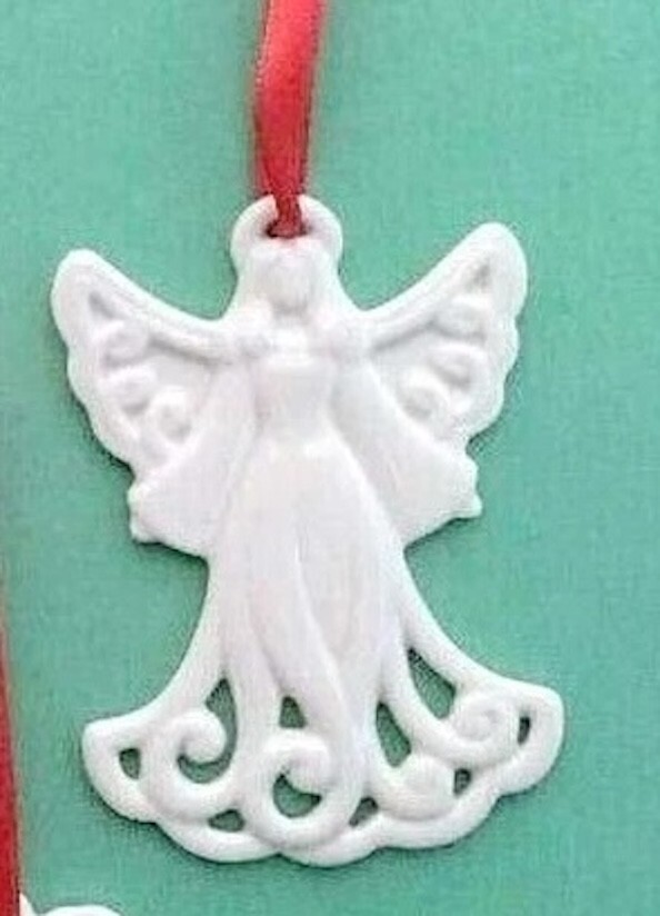 Lenox Pierced Porcelain Angel & Wreath Christmas Charm Ornaments Set of 2 New