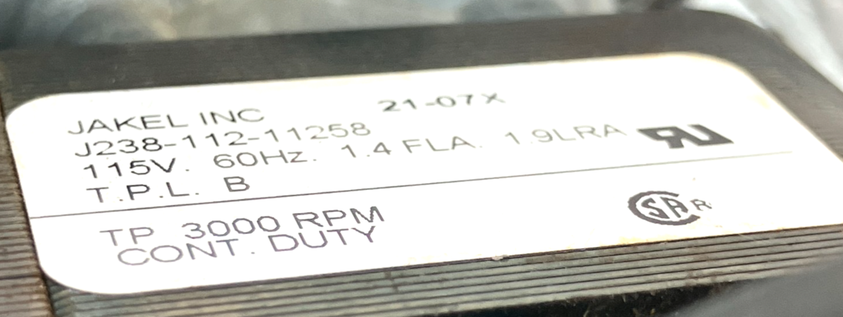 This is JAKEL J238-112-11258 Inducer Blower Motor 119435-00 0131F00006 115V 3000 RPM refurbished, used part.