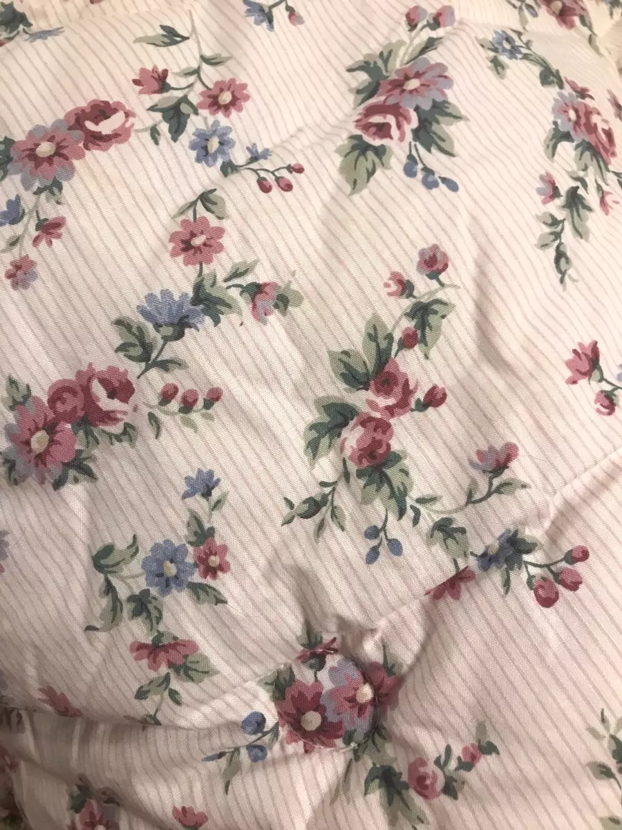 Cotton with cotton fill, Machine wash; Made in USA. No manufacture or material tags.