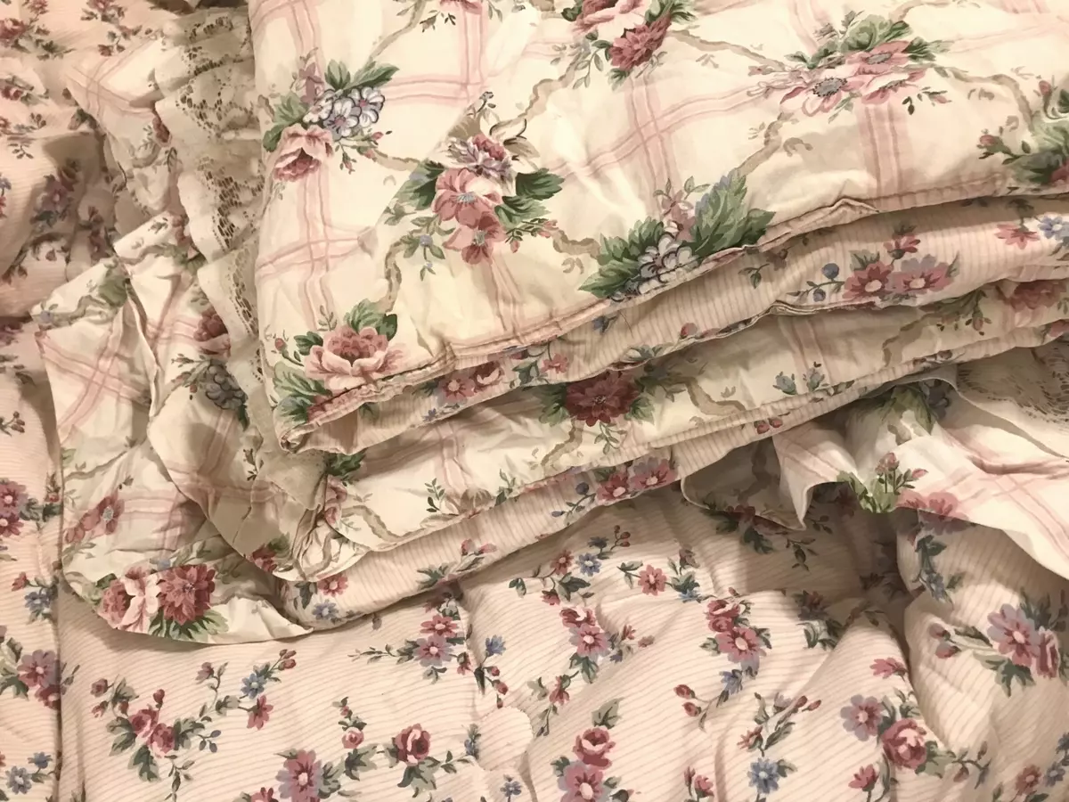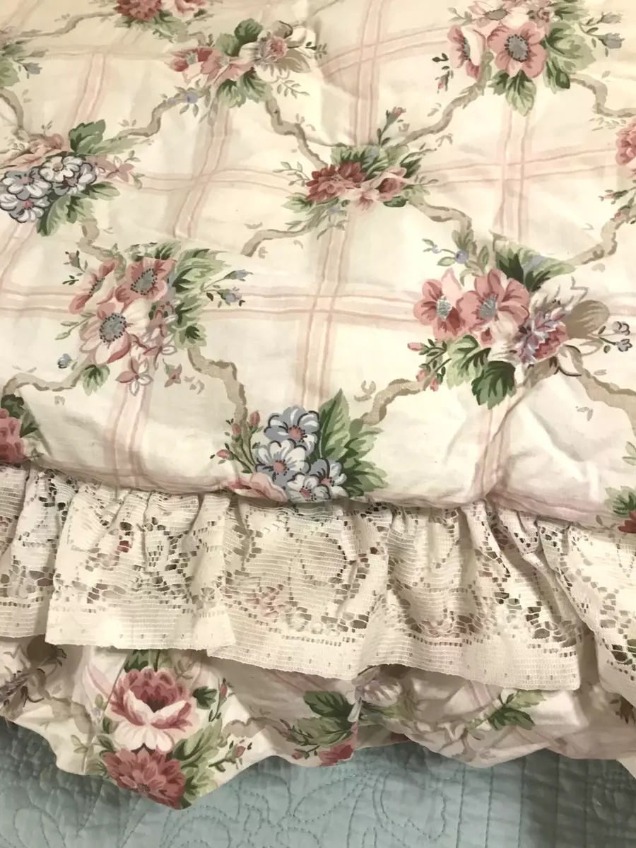 Waverly Sonnet Plaid Floral Pink My Favorite Things Lace Ruffled King Comforter