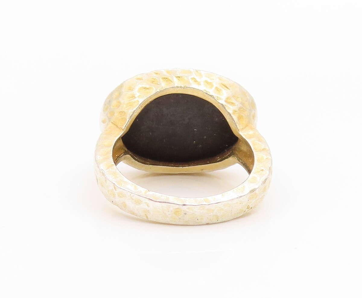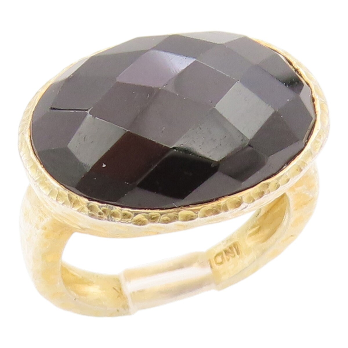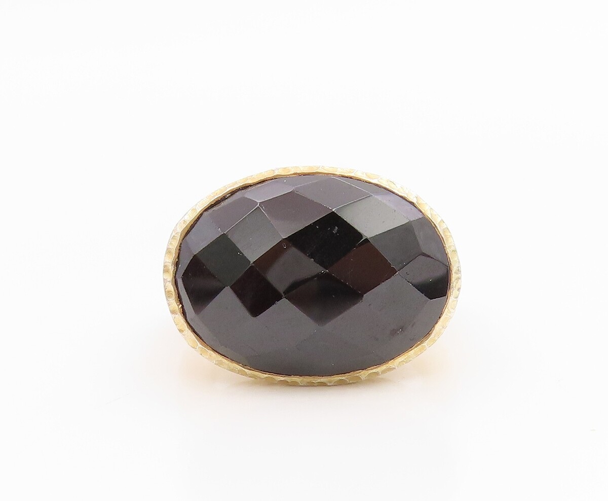 925 Sterling Silver Vintage Ring Gold Plated Faceted Onyx Band Sz 5 RG35785