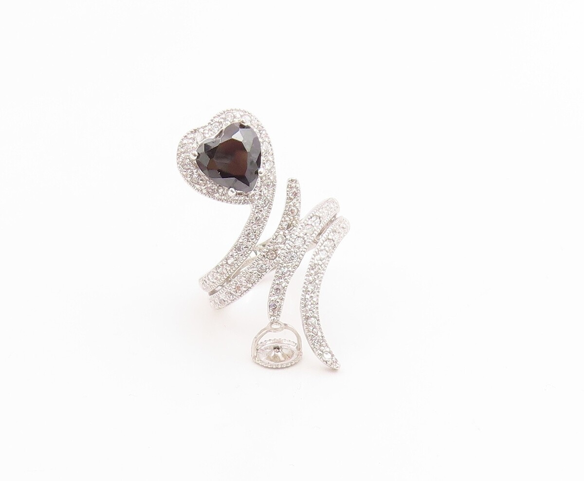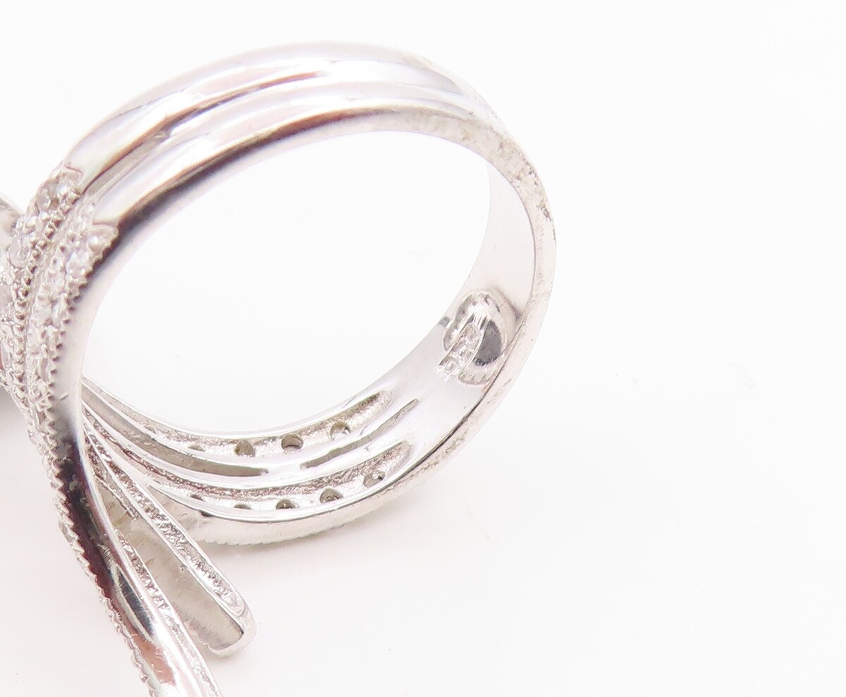925 Sterling Silver Vintage Ring Sapphire & Topaz Love Heart Bypass Sz 7 RG35663