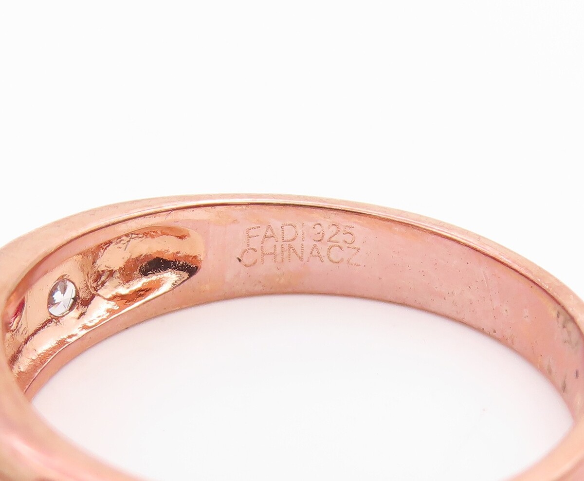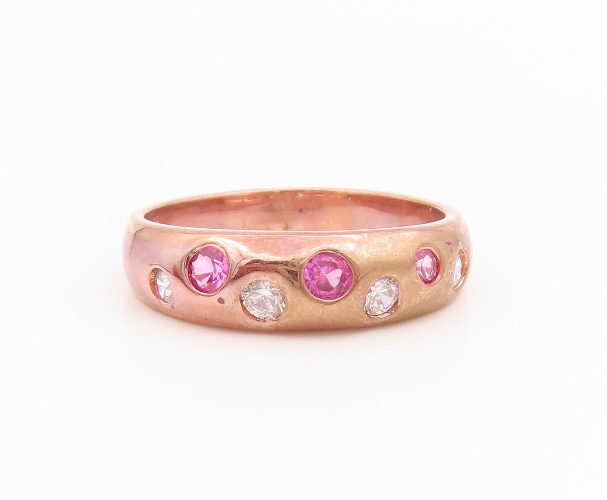 925 Sterling Silver Vintage Ring Gold Plated Pink & White CZ Dome Sz 7.5 RG35788